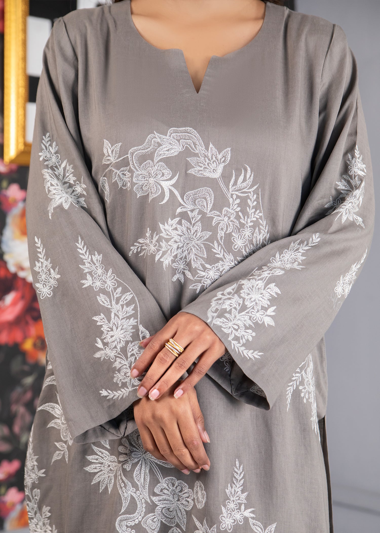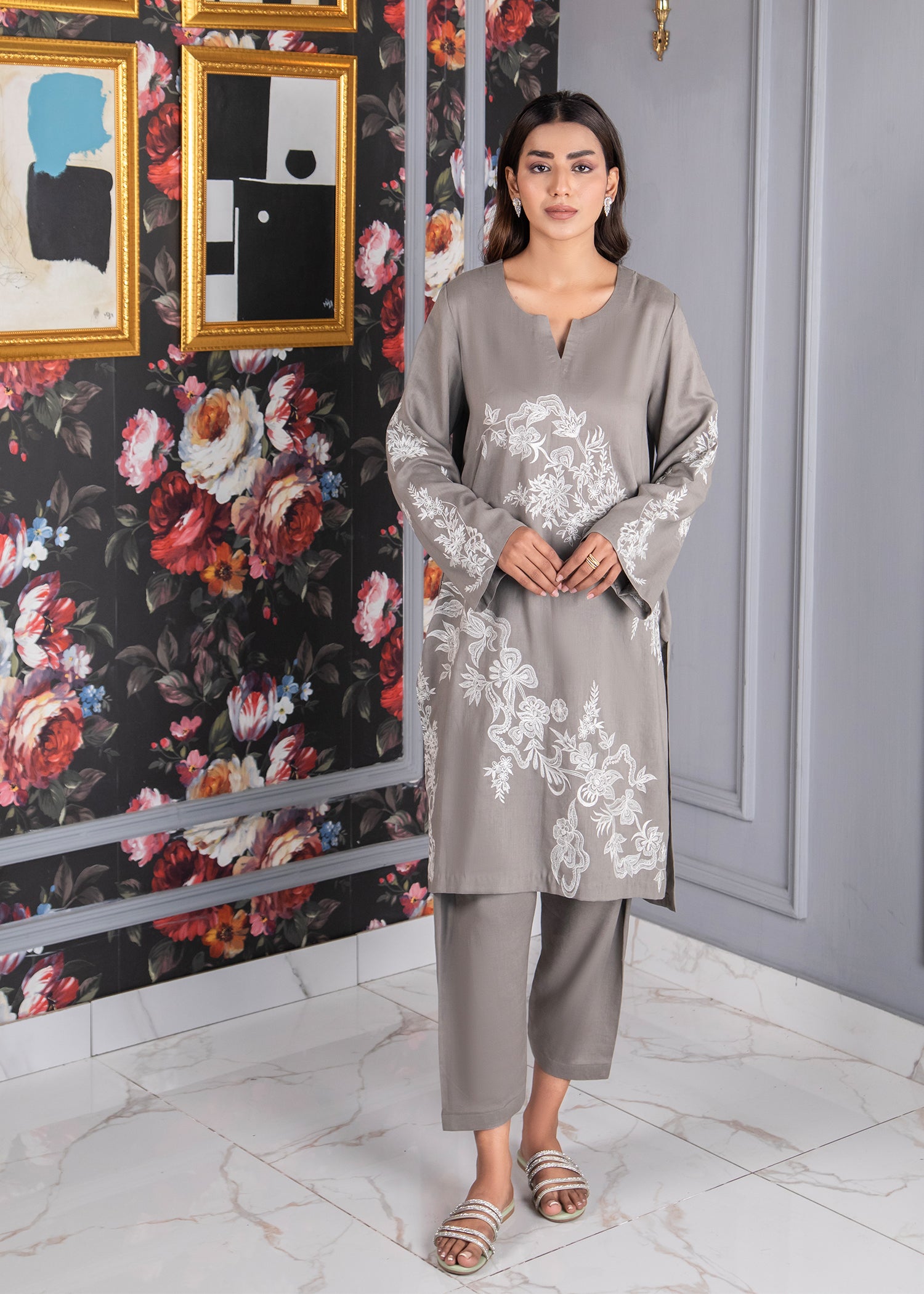 Embrace everyday luxury with our Aura shirt and shalwar set, designed for effortless elegance. Crafted with comfort in mind, this ensemble features intricate embroidery adorning the front and sleeves, adding a touch of refined charm to your daily wardrobe.